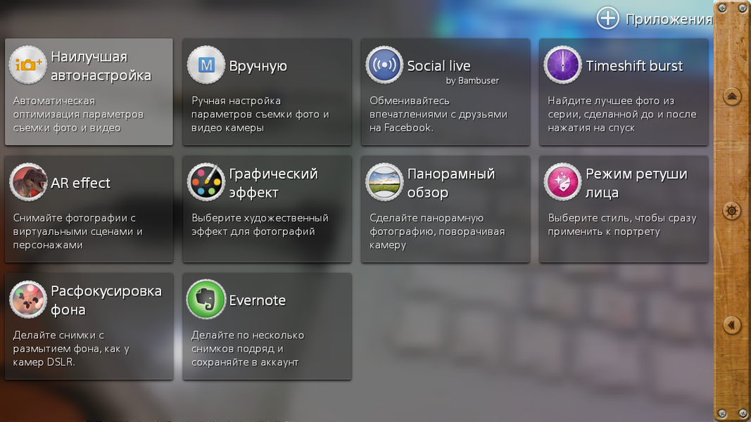 А функция Social Live позволяет вести прямые видеотрансляции на свою страницу в Facebook — примерно как приложение Ustream, только без необходимости постить ссылки на поток и сообщать всем, что вы в эфире. Время трансляции ограничено 10 минутами. Главное — не пытаться снимать на камеру собственную трансляцию, ведь тогда Вселенная может схлопнуться в чёрную дыру. Мы предупредили!