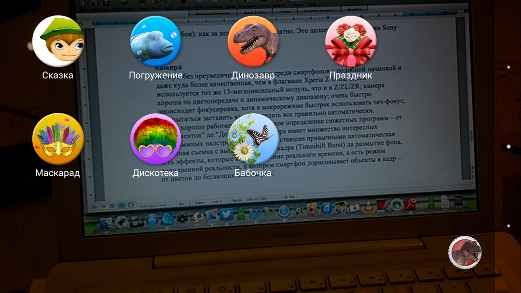 Есть здесь и ставшие привычными автоматическая серийная съёмка с выбором лучшего кадра (Timeshift Burst), и размытие фона. Есть эффекты, которые видно по ходу съёмки, а ещё есть режим дополненной реальности, в котором смартфон дорисовывает объекты в кадр — от цветочков до бегающих динозавров.