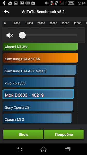 На диаграммах AnTuTu Benchmark кажется, что Xperia Z3 сильно отстает от конкурентов. На самом деле результат чуть-чуть отличается при каждом новом прохождении теста. Кроме того, есть небольшая погрешность. И на самом деле флагмана Sony демонстрирует точно такую же производительность, как и HTC One (M8).