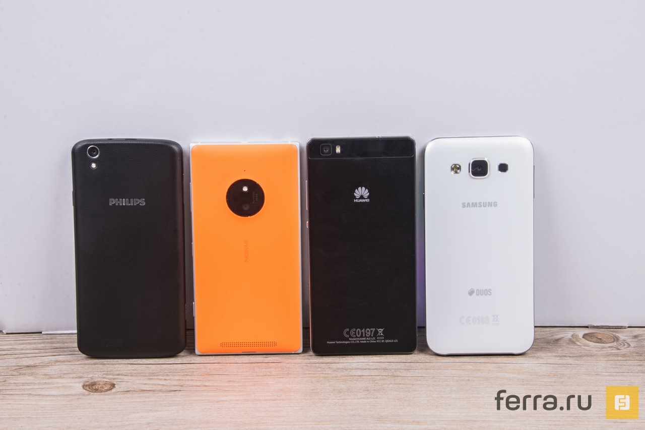 Именно эту тенденцию мы и проверим на примере современных представителей класса «лайт-флагманов». Под знаменами Windows выступает вторая по крутизне среди новых устройств Microsoft модель — Lumia 830, суб-флагманские «Андроиды» у нас сегодня представлены смартфонами Huawei P8 Lite и Samsung Galaxy E5. Именно их консультанты в сотовых салонах будут настойчиво рекомендовать всем, кому не хватило денег на Huawei P8 и Samsung Galaxy A7 соответственно. А в качестве проверки на полноценность наших облегченных флагманов мы взяли менее породистый смартфон из такого же ценового сегмента — Philips Xenium I908. В некоторых аспектах «на бумаге» он смотрится круче конкурентов, а на практике — поглядим чуть позже.