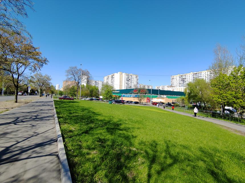 У TCL Pro 5G имеется 4 тыльные камеры, но как и в случае большинства китайцев, реально эффективны только две из них — обычный ширик на 48 мегапикселя, и ультраширик на 16 Мп. Оптического зума нет, но днём на цифровой зум 2х можно получить весьма неплохие результаты, где даже будет больше деталей, чем без зума — особенность “сверхмегапиксельных” матриц вроде 48/64/108 Мп, у которых при обычной съёмке несколько пикселей объединяются в один, а итоговая фотография получается с разрешением 12 Мп. Если света много, то пиксели вполне могут работать и по отдельности, что и даёт увеличение деталей. Но только если света реально много, как в яркий солнечный полдень.