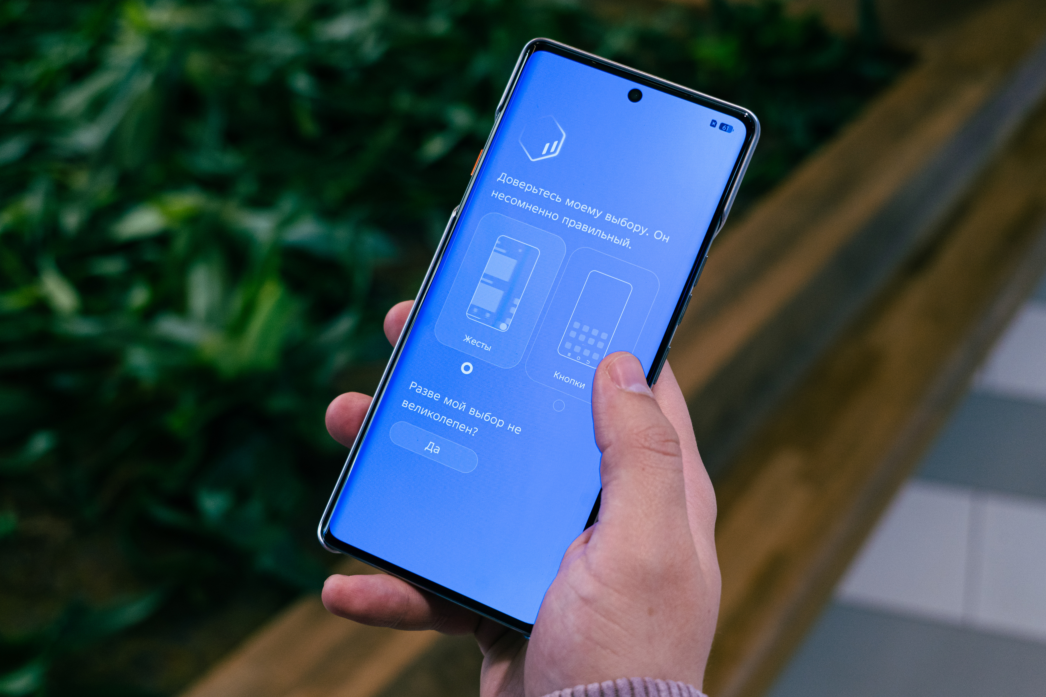 При первом включении Ella встречает вас, помогая выбрать язык, подключить Wi-Fi и настроить аккаунт Google. Голосовой ассистент подсказывает, как настроить жесты или кнопки, периодически добавляя шутки или приколы. Разговориться с ней долго не получится, потому что на мои попытки бойкотировать дальнейшую настройку она быстро возвращала меня обратно «в колею».
