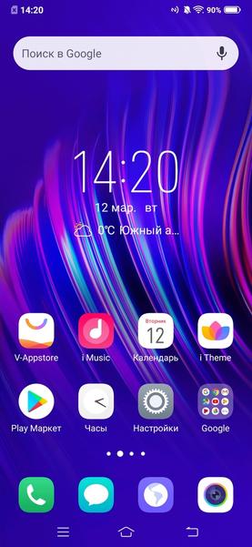 Vivo V15 Pro получил Android 9.0 Pie со своей собственной оболочкой — FuntouchOS 9. Как и прежде, она отличается от других тем, что в верхней шторке у неё только уведомления, а все рычаги управления находятся в отдельной нижней шторке. К этому надо привыкать, в остальном же это вполне привычный Android, хотя некоторые черты наверняка появились здесь под вдохновением от iOS. В этой же шторке есть не только ползунок управления яркостью, но и второй для звука. Здесь же появляются ярлыки самых часто используемых приложений. Благодаря AMOLED-дисплею, оболочка также поддерживает возможность отображать часы, дату, процент заряда и некоторые уведомления на выключенном дисплее. Производитель предупреждает (и я с ним в этом полностью согласен), что это функция заметно отражается на автономности смартфона.