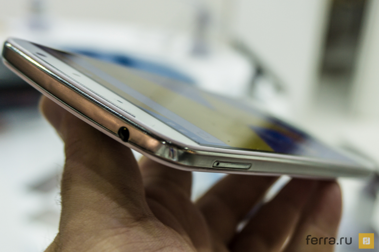 По бокам, а ещё сверху и снизу смартфон обрамлен пластмассовыми панелями «под хром». Так себе задумка – такой пластик выглядит дёшево и теряет свой блеск, стоит только прикоснуться к нему пальцем, но скользким остаётся практически в любых условиях. Зато без металла во внешнем обрамлении корпуса наш десятиядерник оказался удивительно легковесным – на стенде MWC никаких весов не было, но уж поверьте на слово владельцу старого «лопатофона».