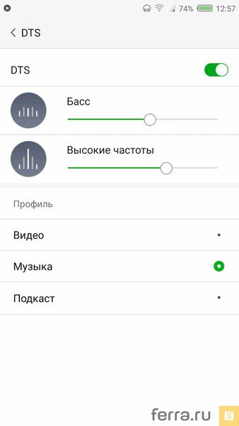 Но на это в настройках смартфонах есть диспетчер звука DTS. Довольно примитивный, всего с парой крутилок, поэтому кардинально звучание он не меняет, но кое-что подлатать под свой вкус вполне можно. Странно только, что последние два деления шкалы громкости работают неполноценно — смартфон куда-то срезает остаток низких частот вместо того, чтобы просто сделать звук ещё громче. Такой же цирк присутствует в Huawei Mate 8, к примеру. Хочется верить, что эта подлянка зарыта в «мозгах» смартфона и её можно будет устранить.