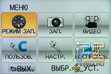 Переключение между режимами съемки происходит после касания иконки в левом верхнем углу экрана. Panasonic в очередной раз сделала небольшой прорыв. В то же время, работать с большинством (но не всеми настройками) можно при помощи только колеса и кнопок. На мой взгляд, наиболее быстрая работа с камерой получается при одновременном использовании и сенсорного экрана, и аппаратных кнопок.