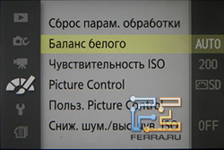 Настройки баланса белого не отличаются особым богатством. Конечно, есть тонкая настройка по шкалам AB/GM, но для ручных настроек предусмотрена только одна ячейка. Ручная установка цветовой температуры не предусмотрела, а вызов меню выбора пресетов спрятан глубоко в меню.