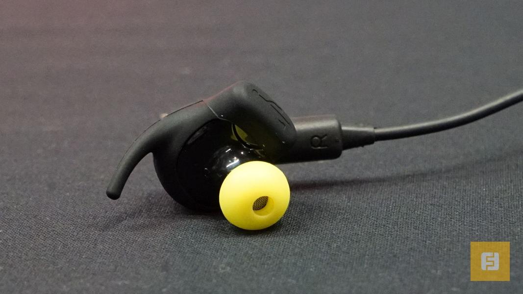 Выглядит устройство симпатично, чёрный провод, жёлтые амбушюры, в обшем, именно так и должны смотреться спортивные наушнинки. Микрофон и кнопки управления здесь размещены в специальном пульте на кабеле, который соединяет два наушника. Разумеется, гарнитура беспроводная, поэтому единственный провод, который здесь есть, нужен для соединения друг с другом двух акустических модулей, а соединение с плеером или смартфоном происходит по Bluetooth. По заверениям производителя, наушники способны проработать до 5 часов в режиме разговора или воспроизведения музыки.