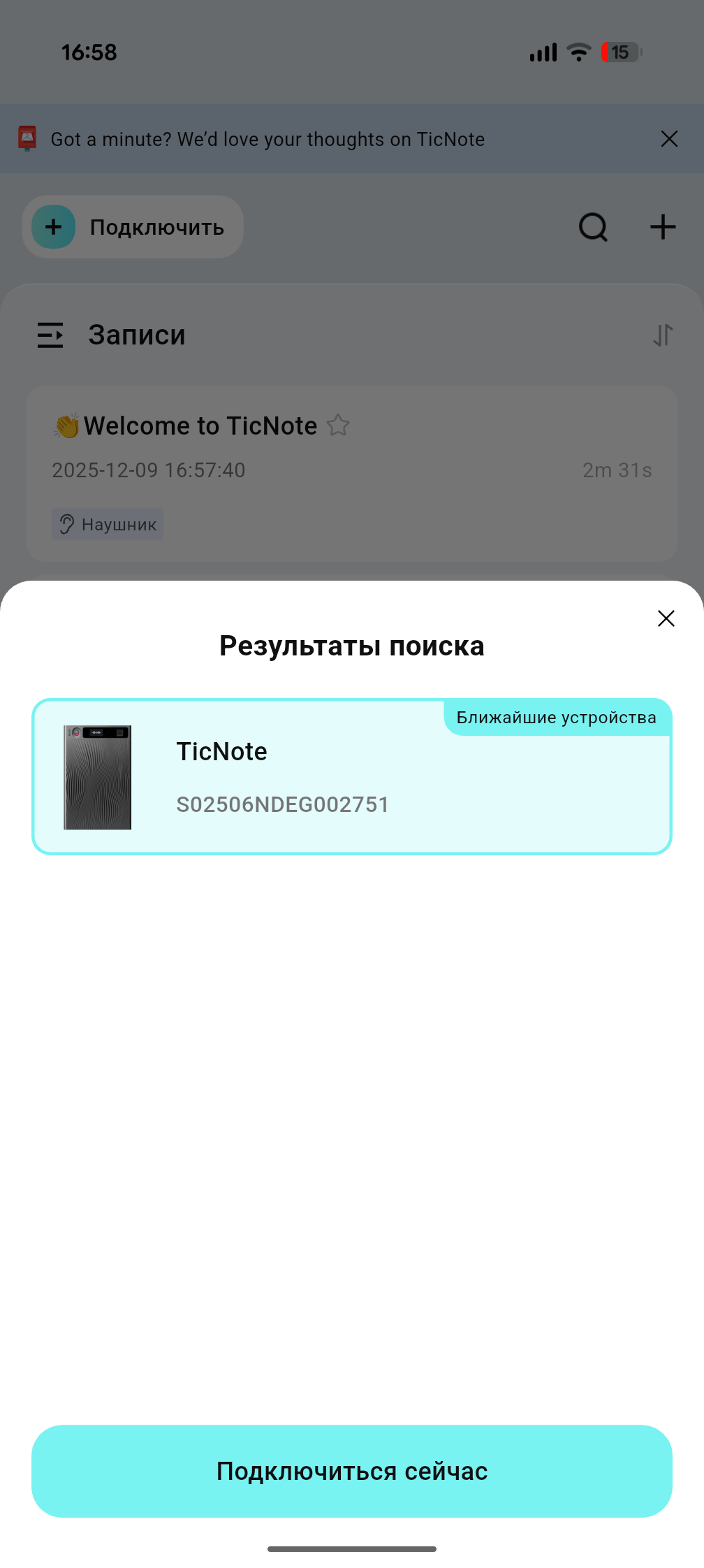 | Подключение к смартфону | Bluetooth, синхронизация через приложение TicNote |