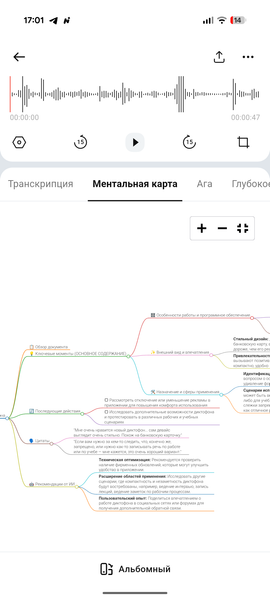 - Ментальная карта — визуальная схема с темами и связями между ними, которая помогает быстро понять структуру беседы и логические переходы.