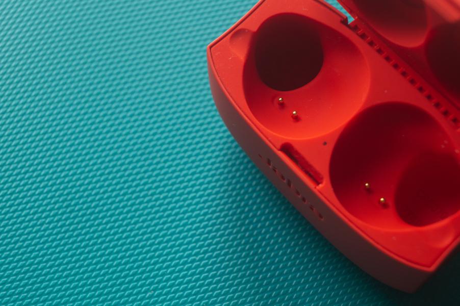 Похоже, всё время инженеров ушло на доводку наушников, потому что кейс продуманным не назовёшь. Ни магнитов для удержания наушников, ни плавного открытия и "доводки". Доставать наушники приходится очень и очень аккуратно, потому что открывается крышка тяжело. В первые пару раз действительно боишься переусердствовать и уже в мыслях собираешься ловить разлетающиеся вокруг наушники. Благо, к нам на обзор попала их красная версия, поэтому долго искать их не пришлось бы.