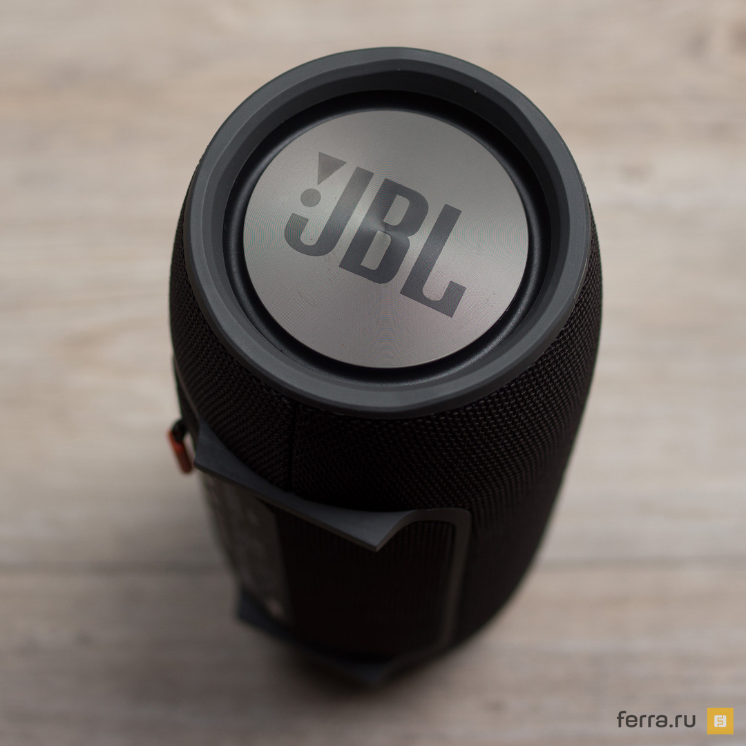 От встроенного аккумулятора на 10 000 мАч JBL Xtreme честно играет заявленные 15 часов. На небольшой громкости получилось даже чуть больше, почти 16 часов. А время полной зарядки при использовании комплектного адаптера составляет ровно 3,5 часа. Зарядить колонку (пусть и частично) от компьютера или пауэрбанка нельзя. По крайней мере вход microUSB отсутствует.