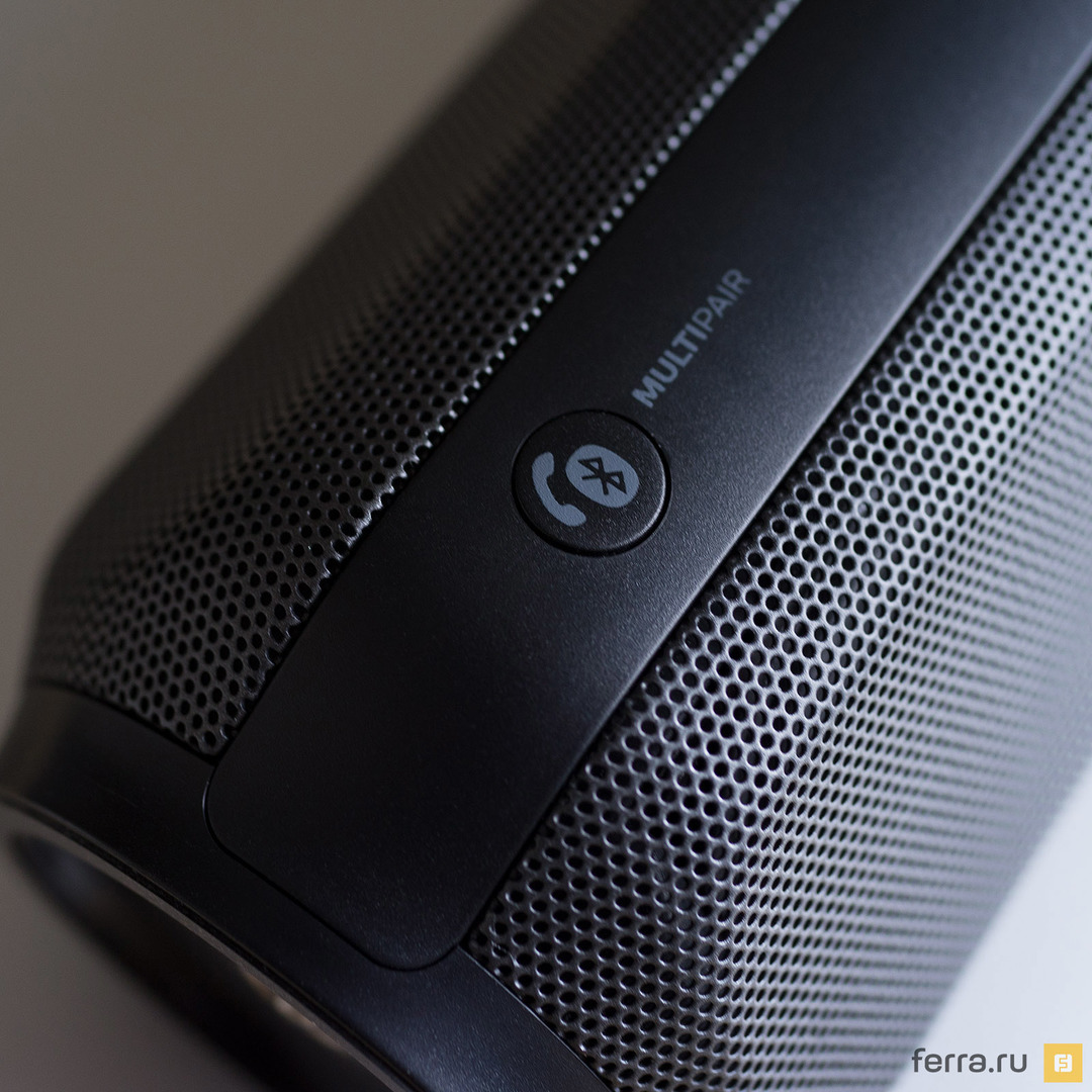 Несмотря на наличие 3,5-миллиметрового аудиовхода, главным способом подключения к Philips BT6600B остается Bluetooth. С функцией Multipair колонка может одновременно соединяться с тремя источниками. В моем случае это были ноутбук, смартфон и планшет – набор сильного и независимого мужчины. Но в целом это позволит разнообразить плейлист на небольшой дружеской вечеринке – три человека подключают свои смартфоны и ставят музыку по очереди. Переключение источников вообще не требуется – достаточно просто остановить воспроизведение на одном устройстве, и запустить на другом. И, кстати, при повторном включении колонка подключится ко всем «знакомым» устройствам автоматически – правда, соединяться она будет последовательно, издавая каждый раз характерный звук.