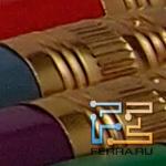 Для оценки шумности использовался следующий метод: фотографировалась группа разноцветных объектов со всеми значениями чувствительности в формате RAW с последующим конвертированием в TIFF с помощью комплектного софта со стандартными настройками. Баланс белого был выставлен автоматически. Съёмка тестовой мишени также была проведена при активированном режиме шумоподавления. Кроп-фрагменты создавались в Photoshop CS5 с последующим сохранением в формате JPEG с минимальным коэффициентом сжатия. На снимке, приведенном ниже, зелеными квадратами обозначены области кроп-фрагментов. Тестовые кадры были отсняты с чувствительностью от 200 до 12800 единиц в ISO-эквиваленте. Стоит отметить, что камера позволяет снимать с автоматическим брекетингом по чувствительности. Функция весьма редкая, но всё же иногда может оказаться полезной.