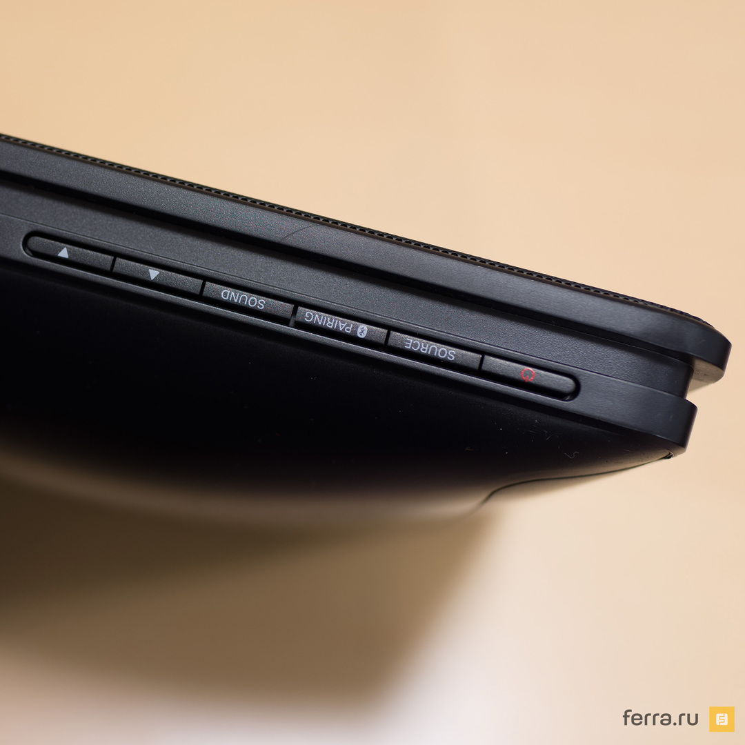 Philips BM5 значительно слабее BM50 – суммарная мощность двух динамиков составляет всего 5 Вт. Но этого оказывается достаточно: уши не закладывает, но на слабую громкость люди точно не будут жаловаться. Располагающиеся на лицевой стороне динамики звучат на удивление прилично. Верхние частоты удались хорошо, к «низам» есть вопросы, но при таком размере корпуса и мощности, вслух задавать их не стоит.