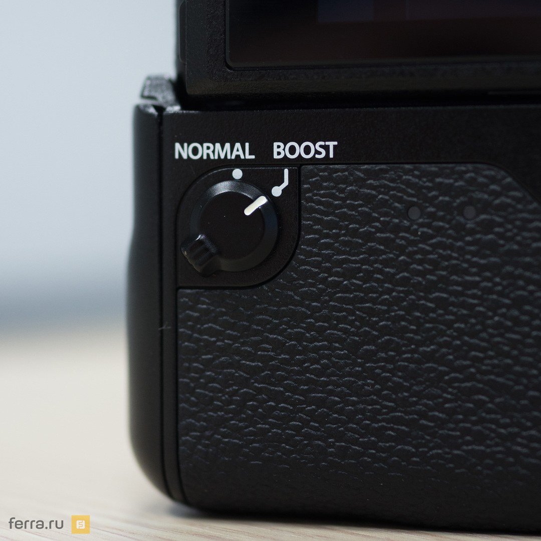 Рукоятка под правую руку стала больше, что будет особенно заметно при использовании крупной и тяжелой оптики. И при желании выступ можно сделать еще больше, если докупить батарейную ручку, которую представили вместе с камерой. Еще она добавит и вертикальный хват с дополнительной кнопкой спуска и другими переключателями, а также ряд усовершенствований к базовой функциональности камеры. Впрочем, с этим в Fujifilm откровенно перестарались – некоторые базовые функции были целенаправленно «обрезаны». Но об этом я расскажу ниже.