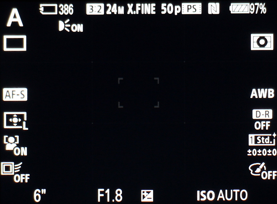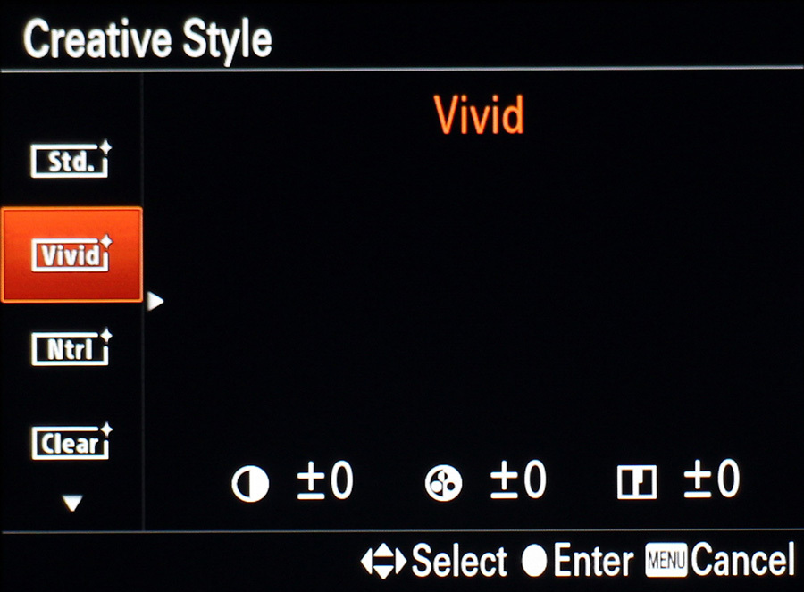 Электронный видоискатель, судя по всему, был заимствован у камер NEX-6 и SLT-A99. Те же 2,36 миллиона точек разрешения, та же степень увеличения и стопроцентное покрытие кадра. Частота обновления картинки в видоискателе составляет 60 кадров в секунду, поэтому глаз чувствует себя вполне комфортно даже при длительной работе. В видоискатель выводится вся та же информация, что и на дисплей. Он отлично зарекомендовал себя на ярких сценах, выдавая естественную картинку. Однако, если закрыть объектив крышкой, то в видоискателе явно заметны шумы в виде цветных точек по всему кадру, которые не проявляют себя на дисплее камеры.