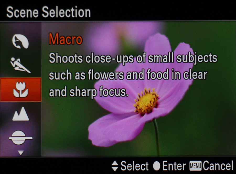 Sony Alpha A7 предлагает базовый набор режимов съемки, знакомый нам по многим предыдущим разработкам. Помимо стандартных режимов PASM, предлагается съемка HDR, режим Hand-held Twilight, многокадровое шумоподавление, а также набор из 16 художественных стилей и 13 фильтров. Интервальная съемка и мультиэкспозиция доступны при загрузке соответствующего платного мини-приложения из Sony Play Memories.