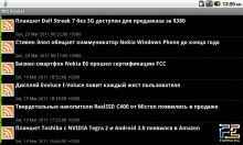 Вот что мне в интерфейсе понравилось — так это клавиатура в ландшафтном режиме (этот режим для планшетов является стандартным). Конечно, не совсем удобно, что при печати текста на экране не остаётся ничего кроме собственно клавиатуры и поля ввода, но зато клавиши действительно большие, а за счёт относительно малых габаритов планшета можно печатать двумя большими пальцами, обхватив устройство руками — во всяком случае, у людей с длинными пальцами это точно получится. Раскладка клавиатуры переключается нажатием одной кнопки, и это действительно удобнее, чем «листать» клавишей «пробел», как сделано во многих планшетах на Android 2.2.
