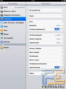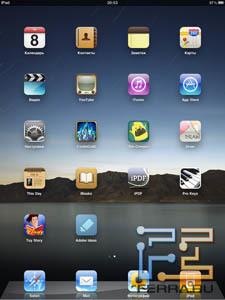 Возвращаясь к экрану, еще раз отметим его качество. Это лучшая матрица среди всех мобильных устройств, включая даже дорогие ноутбуки, как от самой Apple, так и от Sony, Samsung, Toshiba и ASUS. Мы сравнивали картинку на iPad и на 15-дюймовом MacBook Pro. Разница была не в пользу последнего. Разрешение составляет 1024х768 точек, изменить его никак нельзя. Почти все сайты в таком разрешении выглядят отлично, фильмы воспроизводятся без намеков на тормоза. С помощью док-станции, которая продается отдельно, iPad можно подключить к монитору и смотреть фильм на большем экране. Теоретически можно подключить и проектор, сделав картинку еще больше. Однако возможности лично проверить это у нас пока не было. Займемся этим при более детальном рассмотрении планшета.