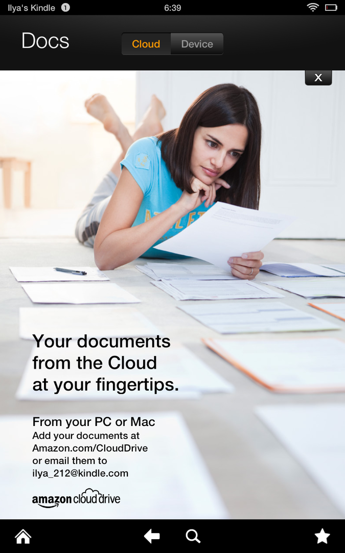 Закачивать документы в Kindle Fire HD можно «по воздуху», отправляя их на специальный адрес