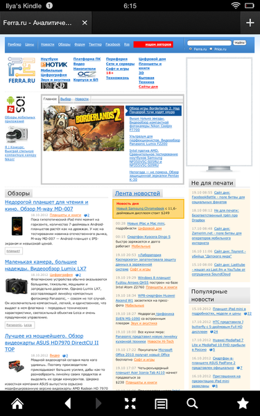 Сайт Ferra.ru — снято на Kindle Fire HD