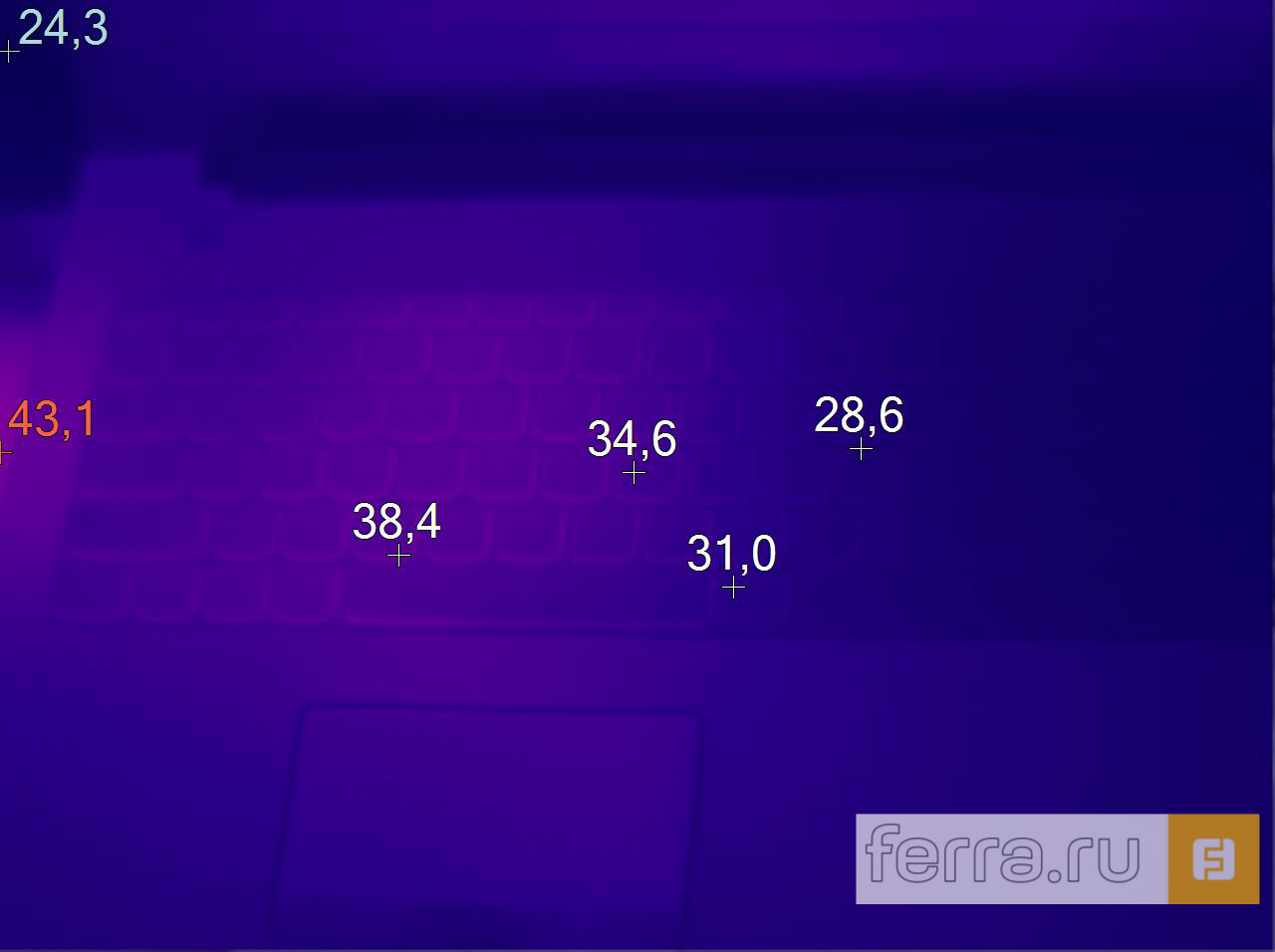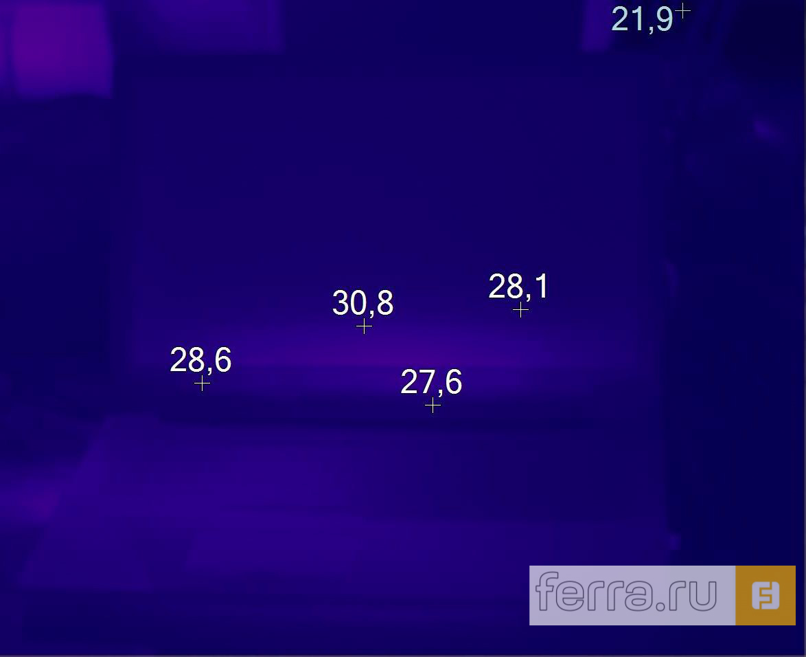 Зато корпус в IdeaPad Z5070 не становится горячим вне зависимости от интенсивности использования — после нескольких часов предельной нагрузки на процессор и видеокарту клавиатура и дно ноутбука оставались едва тёплыми. А просмотр видеозаписей в формате 4K даётся ноутбуку без единого труда: температура корпуса в таком режиме использования почти сравнялась с комнатной!