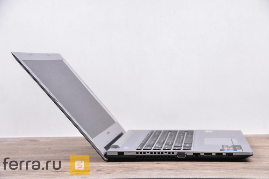 Габариты у ноутбука средние: толщина в районе 25 мм типична для наиболее стройных бюджетных моделей, тогда как мультимедийные ноутбуки и модели с производительной дискретной графикой обычно довольствуются 30-31 мм «талии». Но до ультрабуков герою нашего теста всё равно далеко, а 2,4 кг веса располагаются где-то посередине между крайностями из 2,2 и 2,7 кг у конкурирующих моделей.