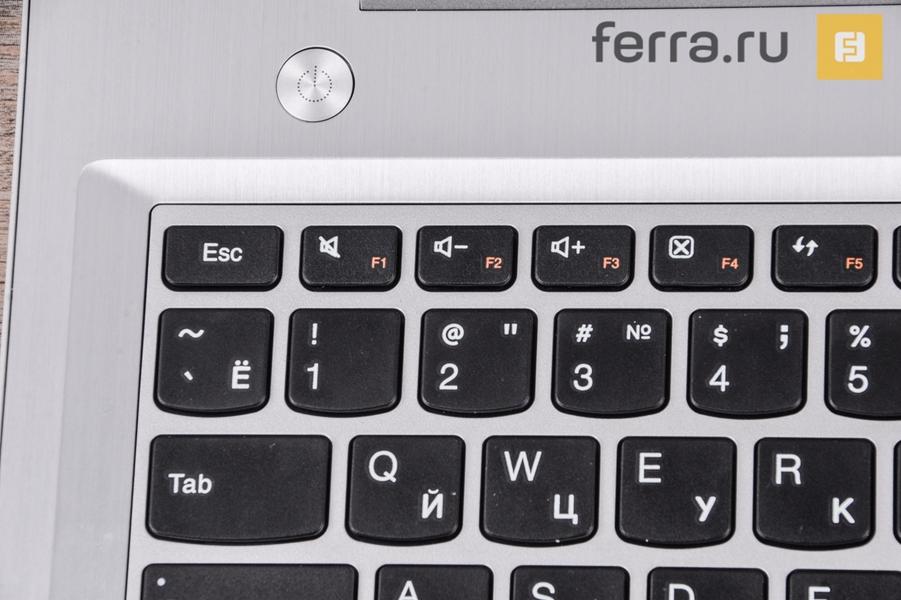 Судя по ощущениям, рабочая поверхность в нашем ноутбуке выполнена из металла — температурные показатели и рисунок с продольной шлифовкой явно на это намекают. Отпечатки пальцев на топкейсе Lenovo IdeaPad Z5070 маскируются отлично от слова «совсем», но клавиатура, к сожалению, заключает в себе ряд компромиссов, наблюдать которые в устройстве класса «15,6 дюймов» не вполне привычно.