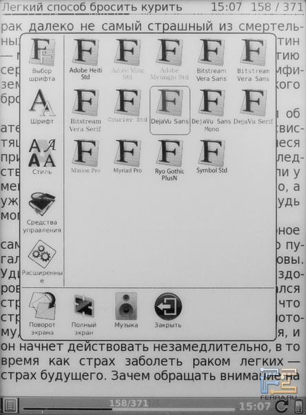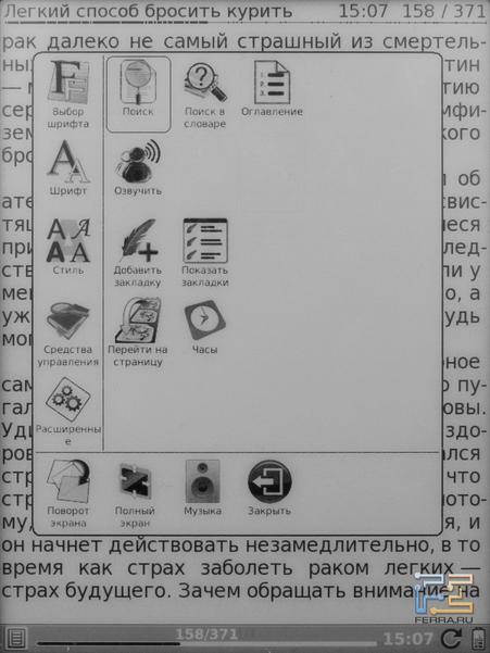 Что можно сказать про проигрывание музыки? Записи в MP3 ридер воспроизводит громко и в меру чисто. Плюс к тому, из режима чтения и из веб-браузера можно перейти непосредственно в плеер и тут же вернуться обратно, выбираться в главное меню не обязательно.