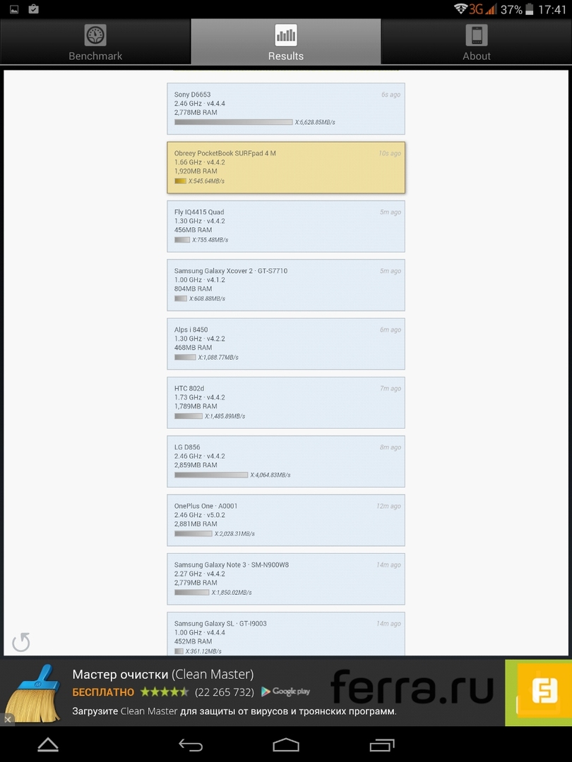 Результат PocketBook SURFpad 4 M в программе GPS Test