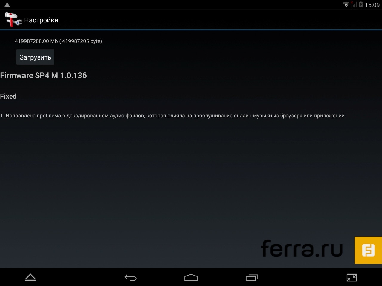 Для тех, кто располагает собственной коллекцией дистрибутивов на карте памяти, производитель предусмотрел простенький файловый менеджер. В системе также присутствует возможность обновления предустановленных приложений и прошивки по воздуху — наш планшет сразу же нашёл свежую версию ПО и без проблем обновился посредством Wi-Fi.