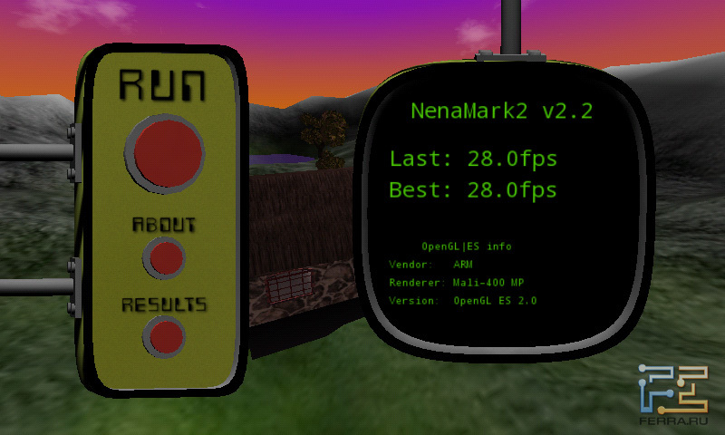 В NenaMark2 все оказалось не столь радужно, но, тем не менее, 30 кадров в секунду — это вполне достойный результат. Видно, что производительность планшета на уровне Tegra 2.