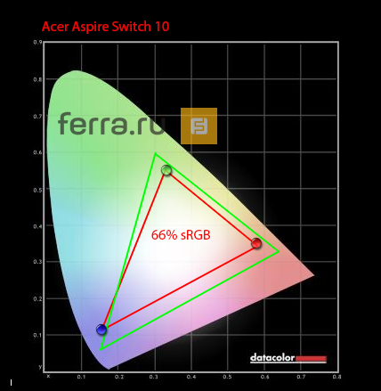 Точность цветопередачи дисплея Acer Aspire Switch 10
