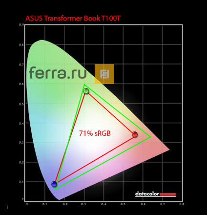 10,1-дюймовый экран Acer Aspire Switch 10 имеет разрешение 1366x768 точек — по современным меркам эта не та величина, которой может похвастаться владелец этого планшета. Однако этот недостаток легко перекрывается отличной сочной и яркой картинкой, за которую стоит благодарить IPS-матрицу (LG Philips LP101WH4-SLAA). Обратимся к колориметру и сравним Acer Aspire Switch 10 и ASUS Transformer Book T100TA.
