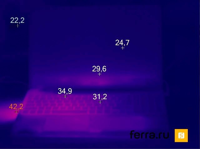 Поэтому перегрев в штатных режимах работы ноутбуку не грозит, а держать его на коленях можно, не опасаясь нагрева корпуса. Обслуживание и чистка корпуса от пыли с таким «запасом прочности» тоже внушает уважение к разработчикам.