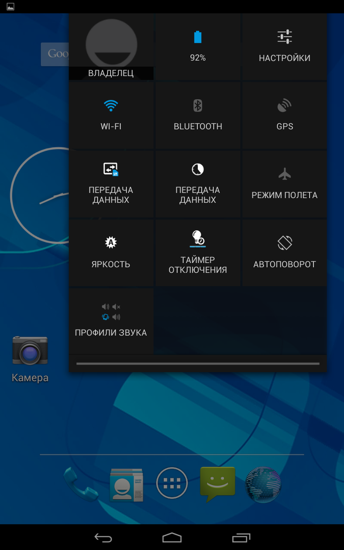 Наш экземпляр работает под управлением ОС Android 4.2.2. Никаких значительных изменений в оболочке замечено не было, перед нами первозданный «Андроид». И это только к лучшему, так как зачастую фирменные оболочки именитых и не самых дешёвых планшетов страдают многими недостатками, что уж говорить про недорогие модели. Так что небольшие подтормаживания интерфейса можно отнести скорее к слабенькой начинке, нежели к плохой оптимизации.
