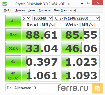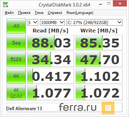 Результаты тестирования Dell Alienware 13 в x264 HD Benchmark 4.0