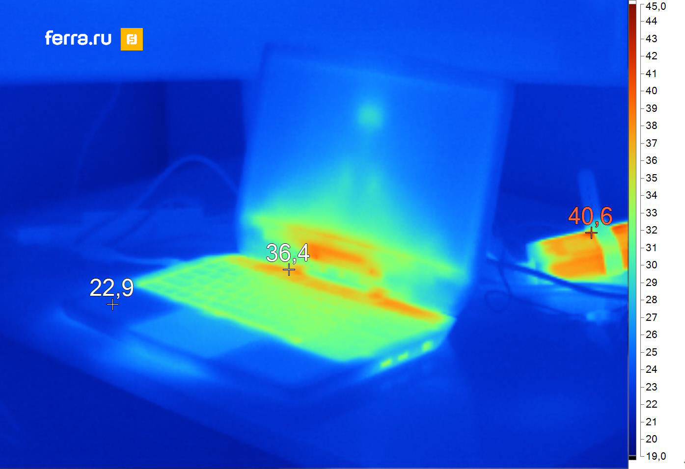 Температура корпуса Dell Alienware 13 после трёх часов игры в Battlefield 4