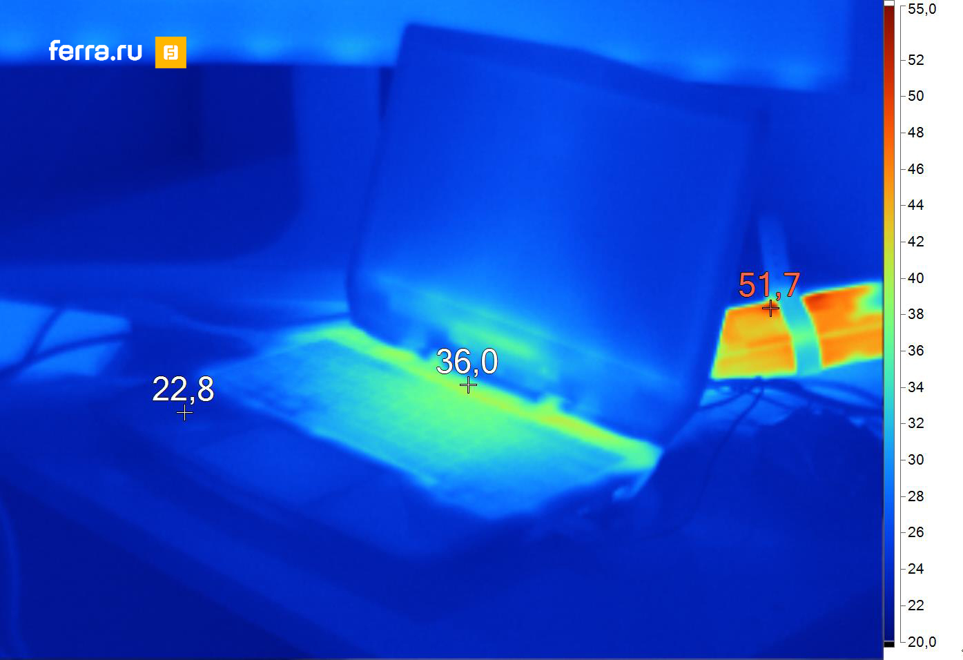 Волноваться за возможный перегрев игрового ноутбука толщиной 27 мм со средне-игровой видеокартой и ультранизковольтным процессором стоило бы только, если бы его разработала и произвела какая-нибудь никому неизвестная фирма. Комплектующие Dell Alienware 13 выделяют не слишком много тепла, ноутбук не бьёт рекордов тонкости, а сквозь вентиляционные отверстия проглядывают сразу два вентилятора.