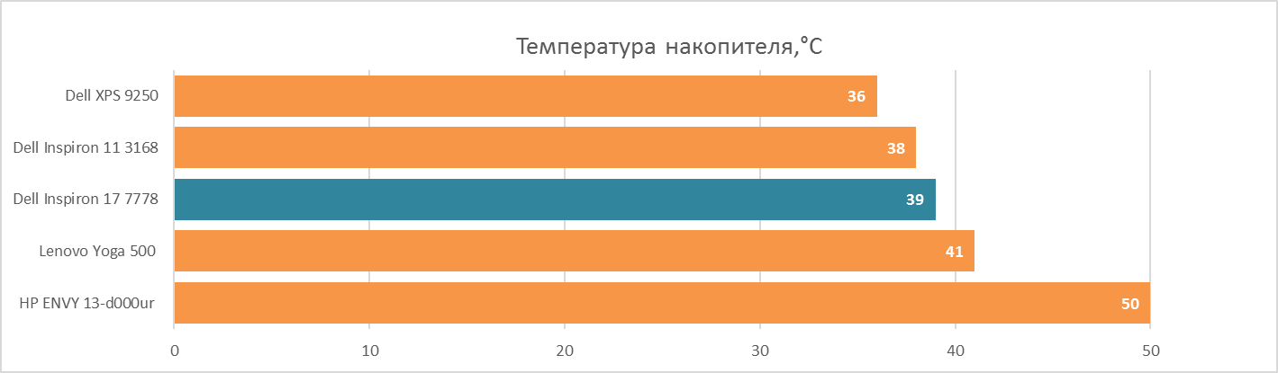 Теперь о тестах: их дисплей Dell Inspiron 17 7778 прошёл хорошо. Хотя сначала о плохом: гамма чуть выше эталонной, также слегка завышена и цветовая температура, но в обоих случаях отклонение невелико. Зато цветопередача у дисплея отличная, плюс высокая контрастность. А вот яркость высокой уже не назовёшь: для дома этого достаточно, а на улице придётся искать густую тень. На большей части поверхности интенсивность подсветки распределена равномерно, хоть совсем без провалов и не обошлось. Подводя итог можно сказать, что в целом экран у новинки отличный.