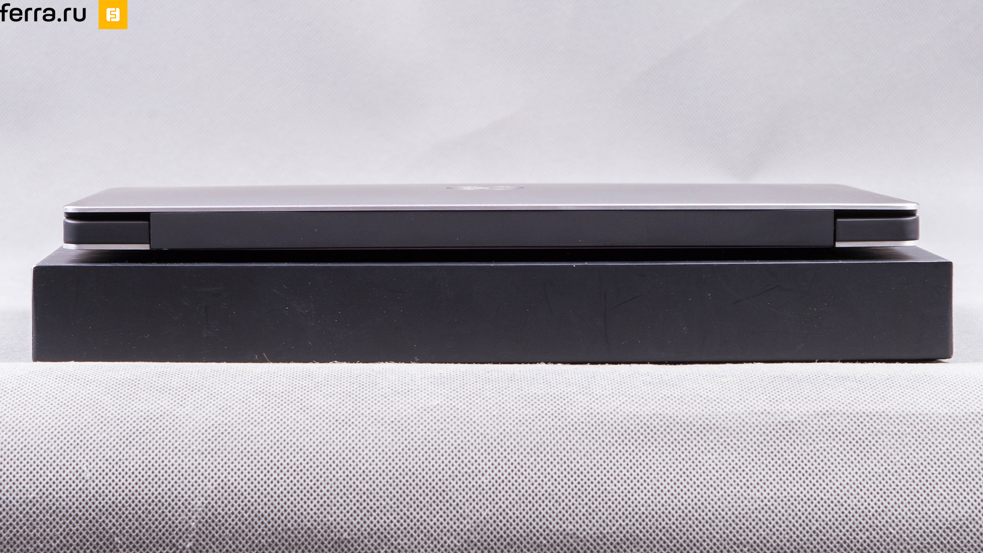 Компактный лэптоп поставляется в аккуратной чёрной коробочке, которая запрятана в типичную коричневую упаковку. Выглядит Dell XPS 13 9350 неоднородно, как и прошлогодняя модель: крышка дисплея и нижняя панель сделаны из алюминия, а топкейс и рамка матрицы — чёрный пластик. На верхней крышке ровно по центру расположен логотип, на нижней — две продолговатые прорезиненные ножки, ряд вентиляционных отверстий без какого-либо намёка на фильтр от пыли, и традиционная маленькая крышечка с надписью XPS. Под ней нет ни оперативной памяти, ни накопителя, а всего лишь наклейка с серийным номером и прочей служебной информацией. И один винт — не пропустите его, если соберётесь разбирать лэптоп. Эта маленькая крышечка нужна, чтобы со временем информация под ней не стёрлась. Однако, где гарантия, что она сама с годами не начнёт болтаться?