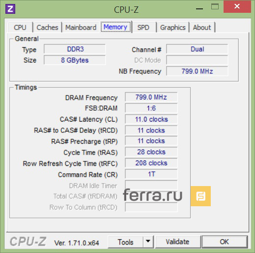 Оперативная память2х 4 Гбайт, DDR3, 1600 МГц, Dual Channel