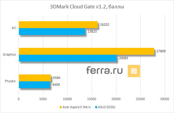 Для сравнения результатов тестов использовался ASUS G550J, о котором уже упоминалось на предыдущей странице. Он толще и оснащён чуть более слабой видеокартой — NVIDIA GeForce GTX 850M, но стоит столько же, сколько и Acer Aspire V Nitro. Подробнее о нём можно прочитать в соответствующем обзоре. Столкнём их в наших обычных тестах и реальных играх.