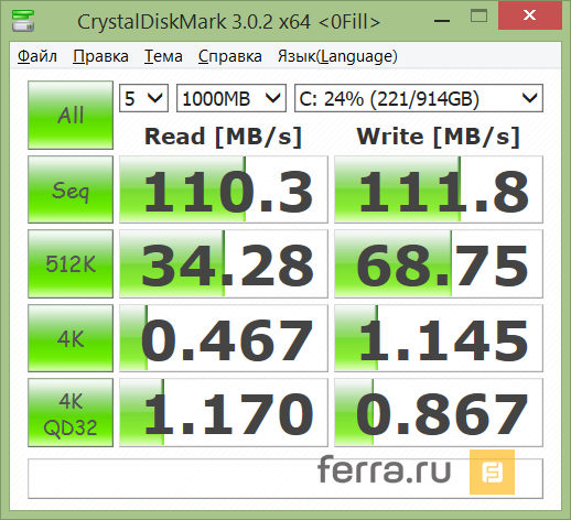 Гибридный диск показал нормальный результат, однако обычный жёсткий диск, но с более высоким количеством оборотом шпинделя (7200 у HDD «Асуса» против 5400 у SSHD «Нитро»), опережает его. А по субъективным ощущения оба ноутбука примерно одинаково запускали ОС и программы.