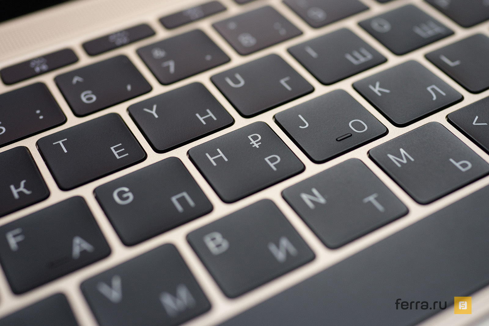 У клавиш очень короткий ход, буквально один миллиметр. Apple даже пришлось изменить механизм нажатия, поскольку традиционный ножничный (из MacBook Air и MacBook Pro) оказался нежизнеспособен в столь тонком корпусе. Новый механизм называется «бабочка».