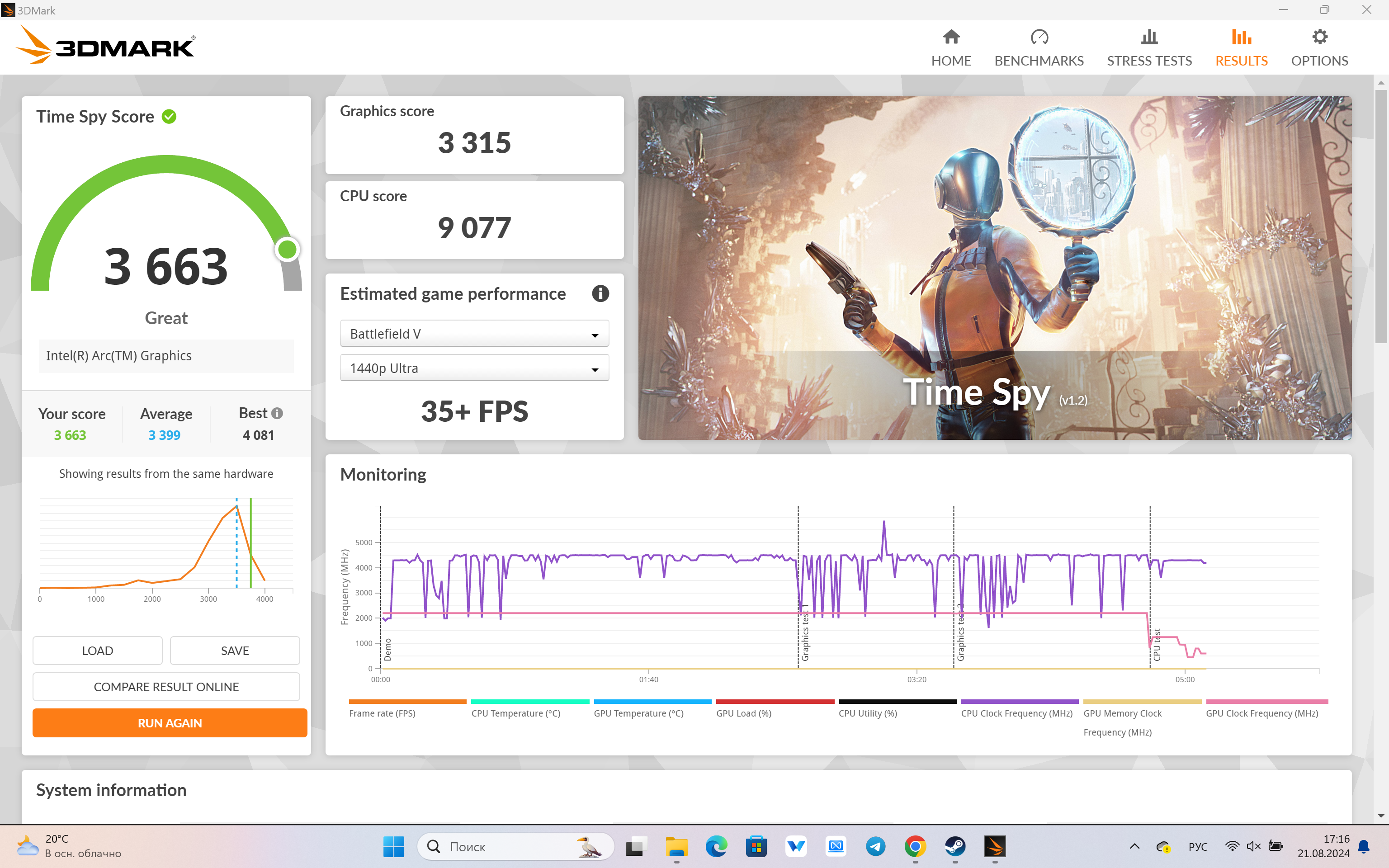 Казалось бы — ну и в чём тогда смысл от нового процессора? Прирост автономности отстутствует, производительность увеличилась лишь самую малостью. Но смысл всё же есть. Если взять тесты GPU, то Intel Arc в Intel Core Ultra 5 125H показывает уже значительный прирост по сравнению со всем, что у Intel было в предыдущих поколениях. Я смог поиграть в GTA V в разрешении Full-HD на максимальных настройках с частотой кадров не ниже 45 FPS. А чуть на более скромных настройках можно получить стабильные 60+ FPS! Считаю, это победа для Intel.