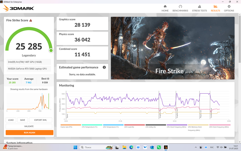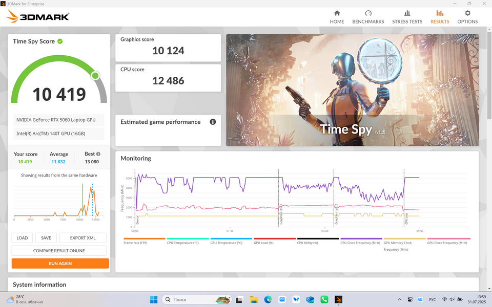 Вот вам видео для ориентира с тестом игр на ноутбуке с RTX 5060. Там, правда, Core i7, но от Core Ultra 9 в играх отличия с 5060 будут минимальны: