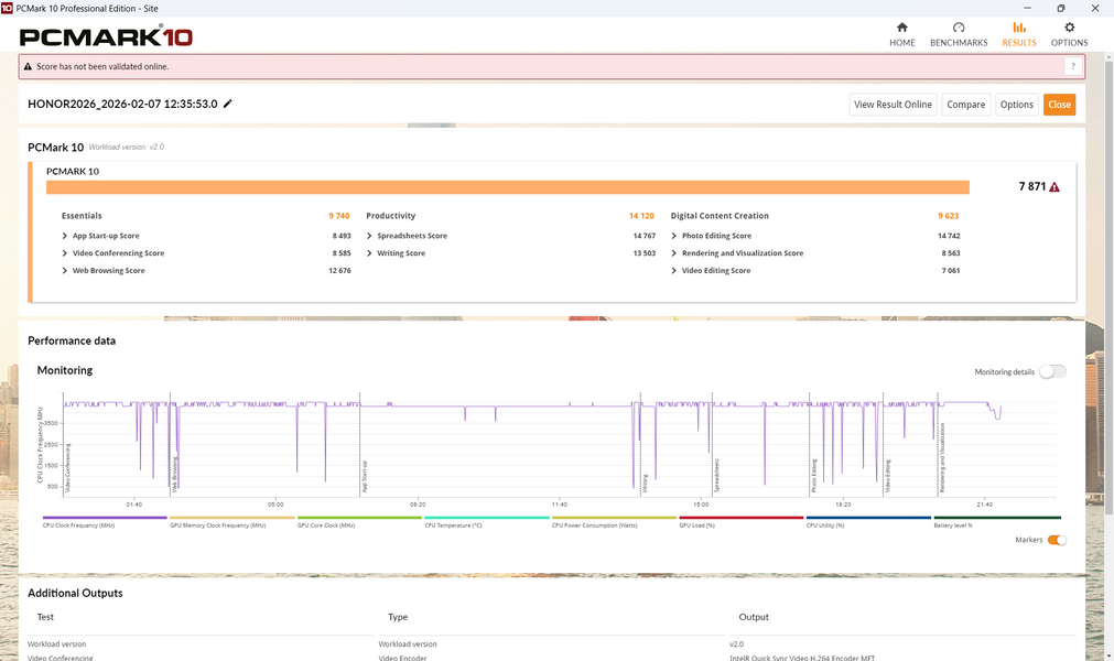 По автономности здесь тоже всё прилично. В тесте PC Mark 10 с выставленной яркостью экрана 200 кд/м2 (более чем достаточно для помещения, даже с избытком) ноутбук проработал 8 часов в режиме эмуляции офисной работы и 10,5 часов в режиме просмотра видео. При максимальной яркости результаты лишь чуть скромнее: 7 часов 17 минут в режиме офисной работы и 9 часов просмотр видео.