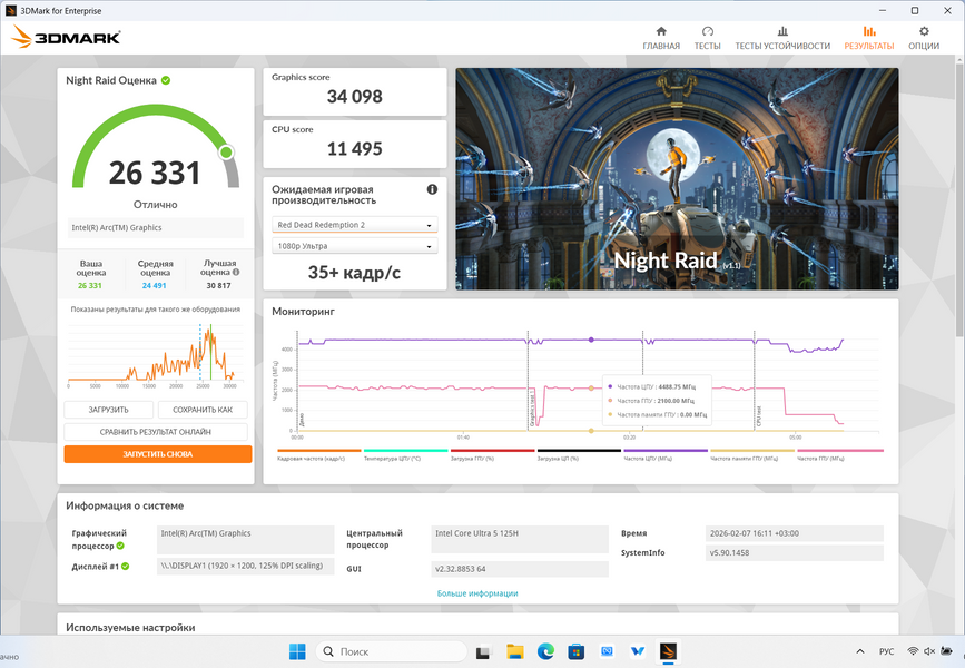 Ещё у Intel Core Ultra 5 125H есть довольно крутая интегрированная графика Intel Arc Graphics, которая в разы производительнее, чем Intel UHD Graphics в большинстве выпущенных на сегодня процессоров Intel. Чтобы вам было понятнее (ну, вдруг вы в AMDшной графике лучше разбираетесь): это аналог Radeon 760M/860M из Ryzen 5 7640HS и новых Ryzen AI 5 340 или Ryzen AI 7 350.